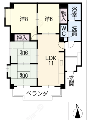 保証金3.00ヶ月 / 償 却2.00ヶ月間取り 3LDK / 77.56入居日 即 可