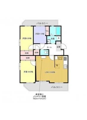 敷 金2.00ヶ月 / 礼 金1.00ヶ月間取り 3LDK / 75.08㎡入居 日 相 談