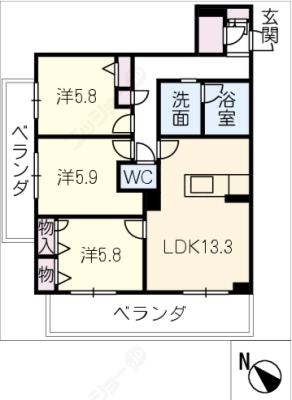 保証金----- / 礼 金2ヶ月間取り 3LDK / 74.33入居日 即 可