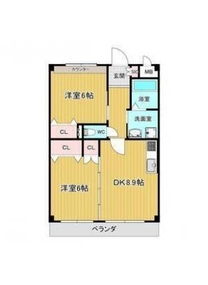 敷 金2.00ヶ月 / 礼 金-----間取り 2DK / 39.60㎡入居日 即 可