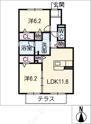 敷 金1.00ヶ月 / 礼 金-----間 取り 2LDK / 60.32㎡入居日 相 談