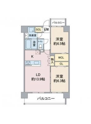 敷 金2.00ヶ月 / 礼 金1.00ヶ月間取り 2LDK / 63.36入居日 相 談