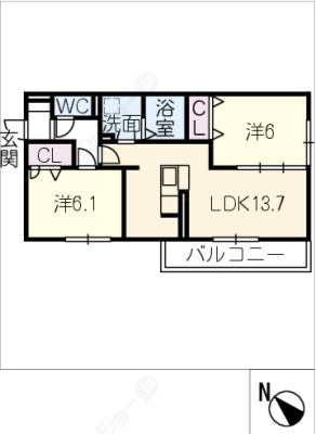 保証金----- / 礼 金1ヶ月間取り 2LDK / 57.78㎡入居日 即 可
