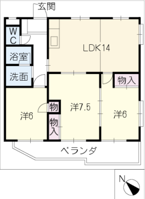 敷 金2.00ヶ月 / 礼 金1.00ヶ月間取り 3LDK / 77.95入居日 相 談