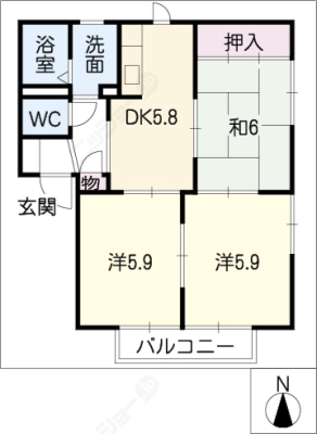 保証金----- / 礼 金61,500間取り 2LDK / 58.29㎡入居日 即 可