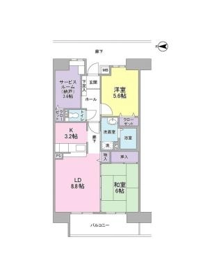 敷 金1.00ヶ月 / 礼 金1.00ヶ月間取り 2LDK / 58.20
