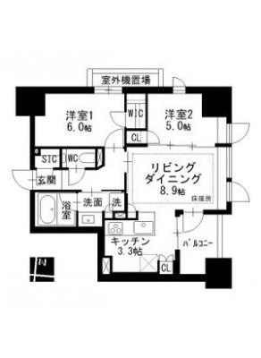 敷 金1ヶ月 / 礼 金1ヶ月間取り 2LDK / 53.91㎡入居日 即 可