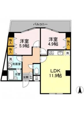 敷 金0.5ヶ月 / 礼 金2ヶ月間取り 2LDK / 61.28㎡入居日 2026年5月下旬