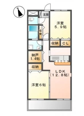 敷 金1.00ヶ月 / 礼 金-----間取り 2LDK / 57.75㎡入居日 即 可