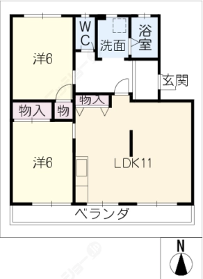 敷 金30,000 / 礼 金2.00ヶ月間取り 2LDK / 62.10㎡入居日 即 可