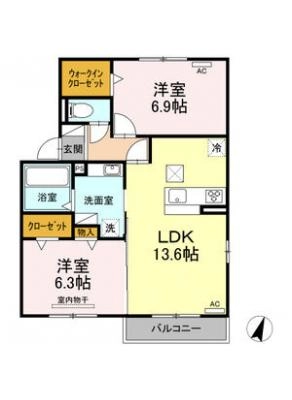 敷 金0.5ヶ月 / 礼 金1.5ヶ月間取り 2LDK / 66.20㎡入居日 2026年2月中旬