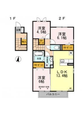 敷 金8万 / 償 却10割間取り 3LDK / 62.37入居日 即 可