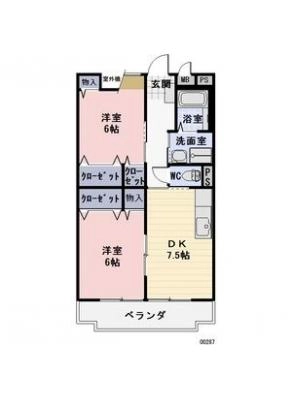 保証金96,000 / 償 却5割間取り 2DK / 46.00㎡入居日 相 談