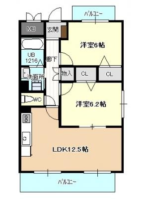 敷 金0.5ヶ月 / 礼 金1.5ヶ月間取り 2LDK / 65.27㎡入居日 2026年2月下旬