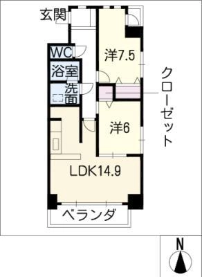 敷 金2.00ヶ月 / 償 却1.00ヶ月間取り 2LDK / 60.20㎡入居日 相 談