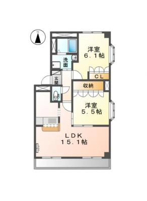 敷 金30,000 / 礼 金90,000間取り 2LDK / 62.15㎡入居日 即 可