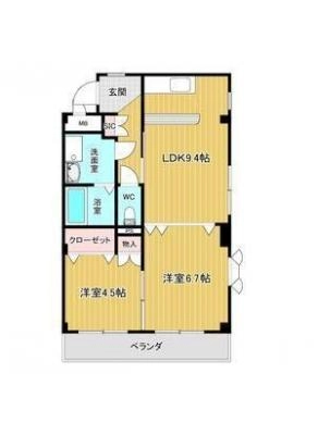 保証金1ヶ月 / 償 却10割間取り 2LDK / 58.08入居日 即 可