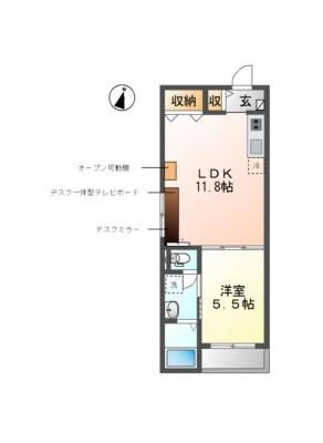 敷 金1.00ヶ月 / 礼 金-----間取り 1LDK / 40.22入居日 2026年4月中旬