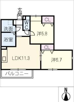 保証金----- / 礼 金1ヶ月間取り 2LDK / 57.25㎡入居日 2025年11月下旬