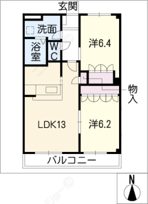 敷 金1ヶ月 / 償 却10割間取り 2LDK / 57.75入居日 2026年2月下旬
