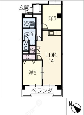 保証金2ヶ月 / 償 却10割間取り 2LDK / 57.97入居日 即 可