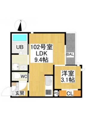 保証金2.00ヶ月 / 償 却10割間取り 1LDK / 34.97入居日 2026年5月25日頃