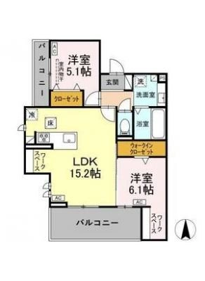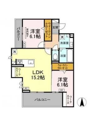 保証金----- / 礼 金1.00ヶ月間取り 2LDK / 62.96入居日 即 可