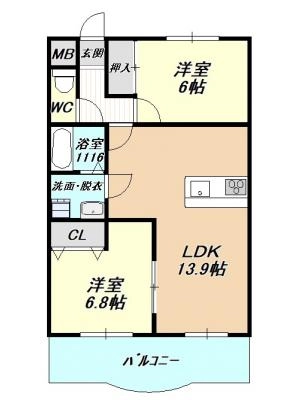 敷 金120,000 / 礼 金1.00ヶ月間取り 2LDK / 60.29入居日 相 談
