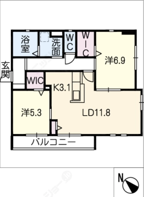 敷 金1.5ヶ月 / 敷 引1.5ヶ月間取り 2LDK / 58.50入居日 即 可