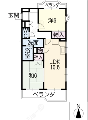 敷 金1.5ヶ月 / 敷 引1.5ヶ月間取り 2LDK / 61.05㎡入居日 2026年3月中旬