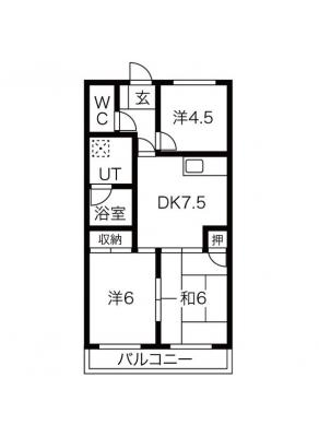 保証金1.00ヶ月 / 礼 金1.00ヶ月間取り 3DK / 49.00入居日 即 可