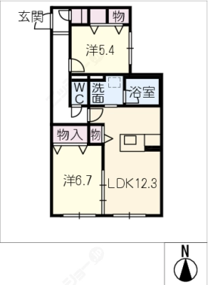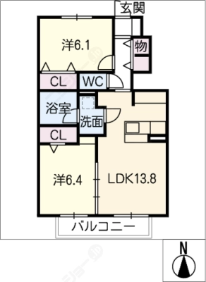 敷 金1ヶ月 / 礼 金1ヶ月間取り 2LDK / 65.40㎡入居日 即 可
