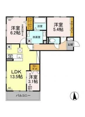 保証金70,000 / 償 却10割間取り 3LDK / 63.18入居日 即 可