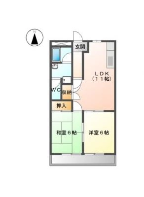 敷 金0.5ヶ月 / 礼 金2ヶ月間取り 2LDK / 65.76入居日 2026年3月下旬