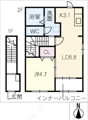 2階57,400円 / 共益費等 8,210円