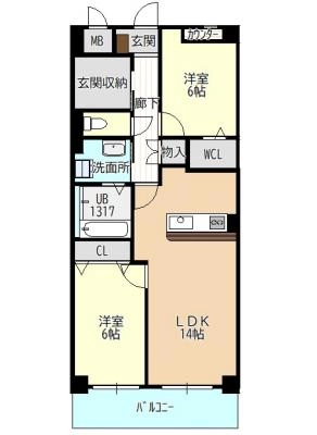 敷 金1ヶ月 / 礼 金1.5ヶ月間取り 2LDK / 64.66入居日 2026年5月中旬