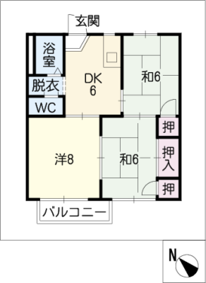敷 金0.5ヶ月 / 礼 金-----間取り 2DK / 45.90㎡入居日 即 可