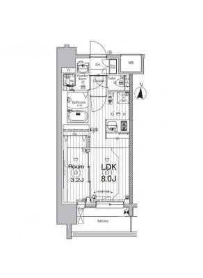 敷 金1.00ヶ月 / 礼 金1.00ヶ月間取り 1K / 24.86㎡入居日 相 談