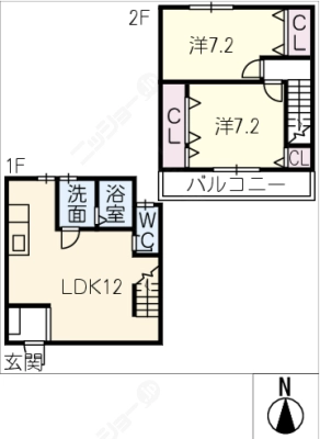 敷 金2ヶ月 / 償 却10割間取り 2K / 52.00入居日 即 可