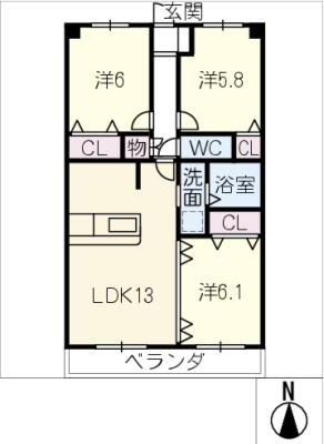 保証金----- / 礼 金-----間取り 3LDK / 65.40㎡入居日 即 可