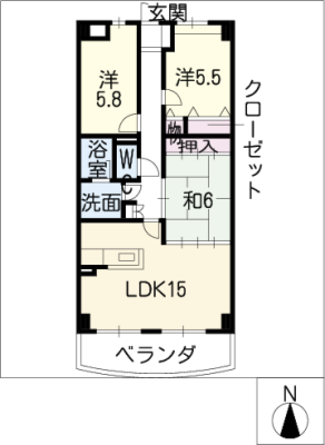 敷 金0.5ヶ月 / 礼 金1.5ヶ月間取り 2LDK / 58.44㎡入居日 2026年1月中旬