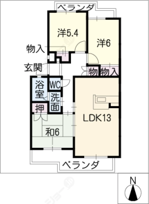 敷 金1ヶ月 / 礼 金1ヶ月間取り 2LDK / 63.18㎡入居日 相 談
