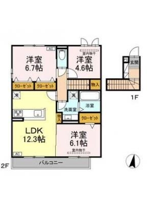 敷 金1ヶ月 / 償 却10割間取り 2DK / 38.80入居日 即 可