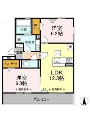 敷 金1ヶ月 / 償 却10割間取り 2DK / 38.80入居日 2026年2月上旬