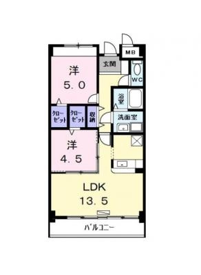 敷 金1ヶ月 / 礼 金1.5ヶ月間取り 2LDK / 64.76入居日 2026年2月中旬