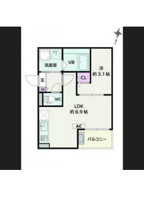 保証金1.00ヶ月 / 償 却10割間取り 1LDK / 38.79㎡入居日 2026年5月1日頃