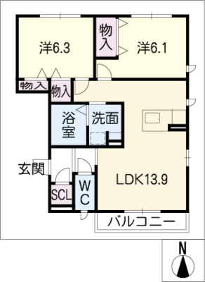 敷 金2ヶ月 / 礼 金-----間取り 2LDK / 62.13㎡入居日 即 可
