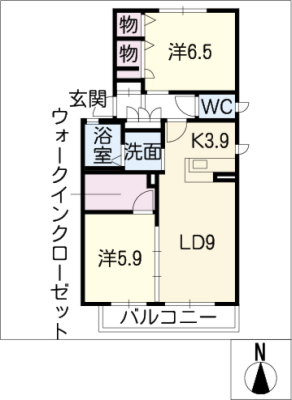 敷 金1ヶ月 / 一時金9万間取り 2LDK / 58.90㎡入居日 2025年12月中旬