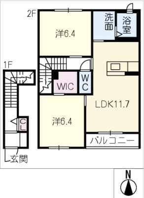 敷 金1ヶ月 / 償 却10割間取り 2LDK / 58.32㎡入居日 相 談