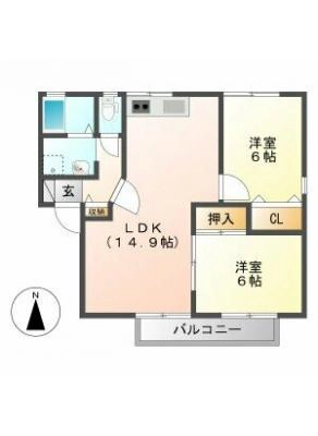 保証金40,000 / 償 却40,000間取り 2DK / 46.37㎡入居日 即 可